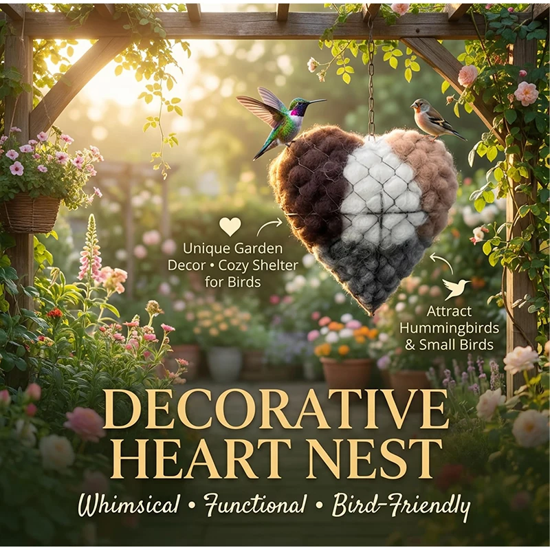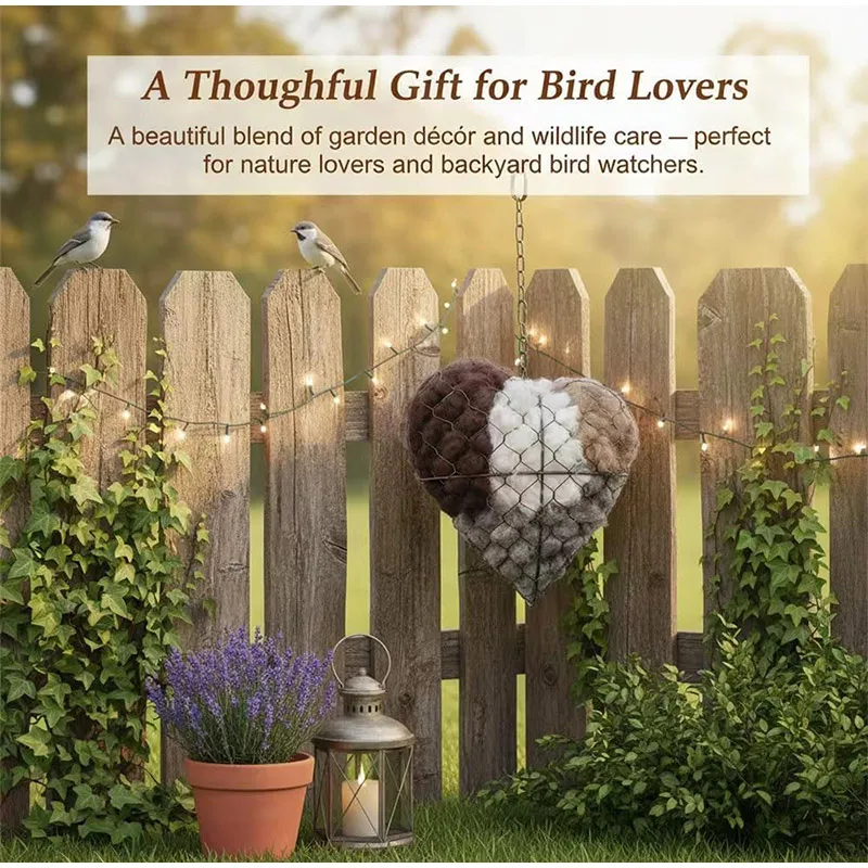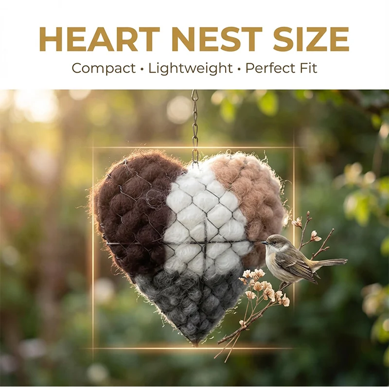 Handmade Alpaca Fiber Bird Nesting Heart Outdoor Yard Art Felt Bird Nest Hanging Heart-Shaped Bird Nest For Bird Nesting Supply